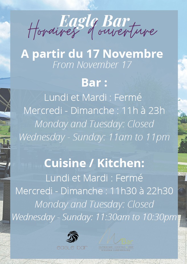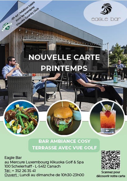 Our Clubhouse with its cosy Eagle Bar is open to members and visitors alike. The Hotel Mercure Luxembourg Kikuoka Golf & Spa situated on site offers quality accommodation in comfortable and tastefully decorated rooms. It offers first class conference facilities holding up to 200 persons. The "Scheierhaff" Restaurant provides excellent dining topped with an outstanding wine list. The Wellness centre with swimming pool, gym, sauna and Jacuzzi, is also available to members and visitors.