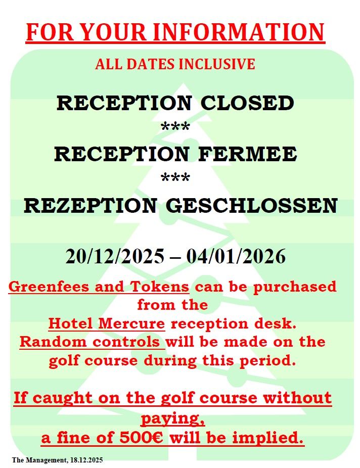 Our Clubhouse with its cosy Eagle Bar is open to members and visitors alike. The Hotel Mercure Luxembourg Kikuoka Golf & Spa situated on site offers quality accommodation in comfortable and tastefully decorated rooms. It offers first class conference facilities holding up to 200 persons. The "Scheierhaff" Restaurant provides excellent dining topped with an outstanding wine list. The Wellness centre with swimming pool, gym, sauna and Jacuzzi, is also available to members and visitors.